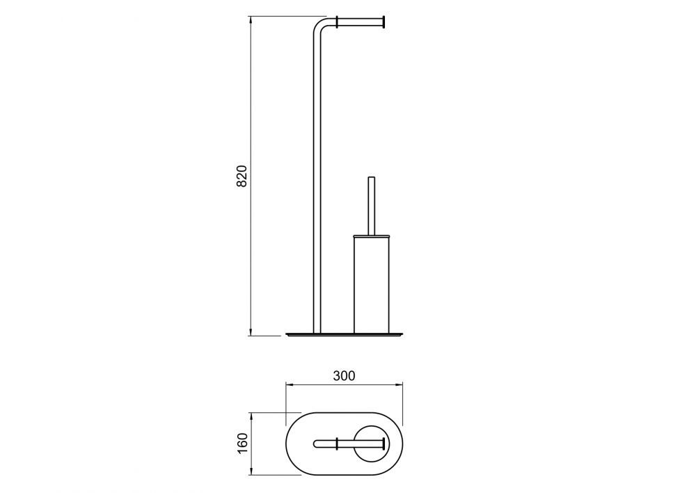 Материал - нержавейка Набор аксессуаров 2 в 1 Бумагодержатель Набор для ершика из нерж. Упаковано в белую коробку Размеры: 300*160*820мм