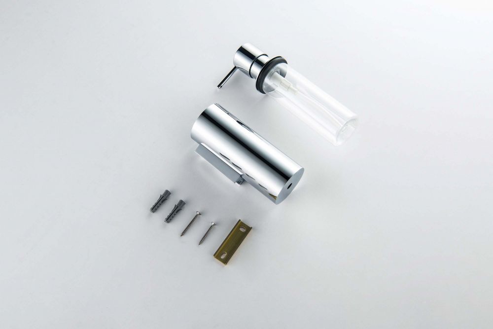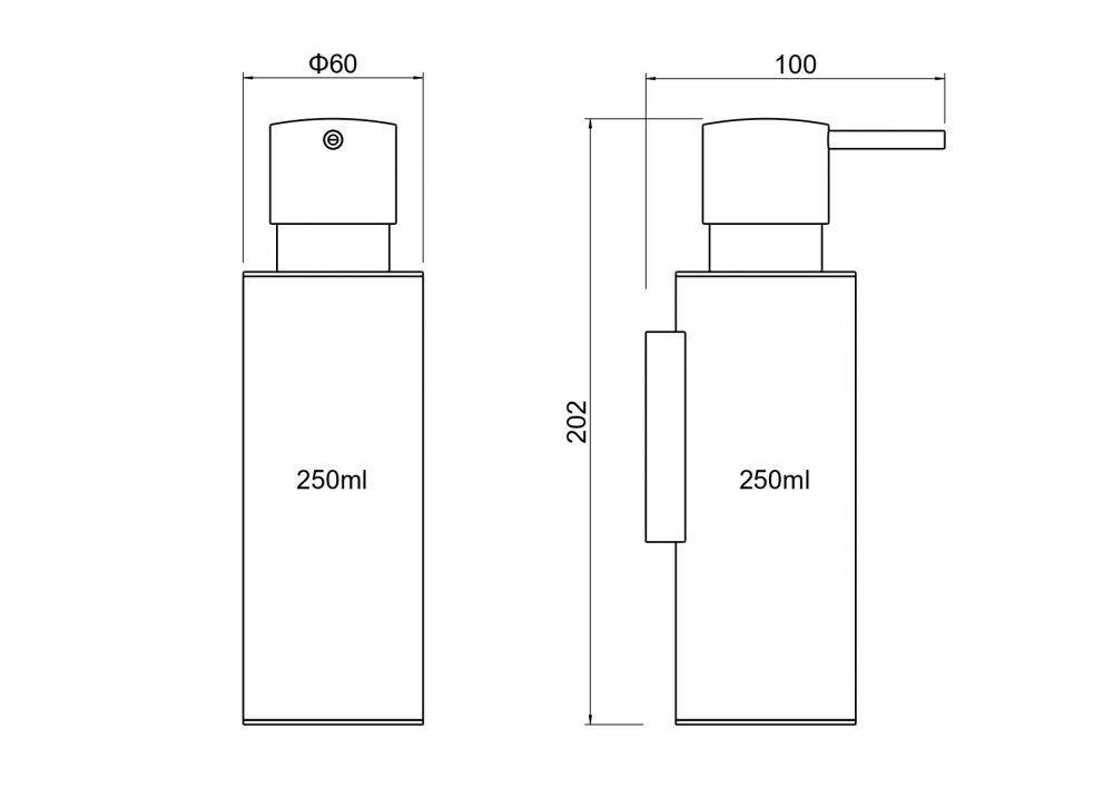 Головка дозатора из латуни Емкость 250мл из нерж. Держатель из латуни Упаковано в белую коробку Размеры: 60X100X202мм