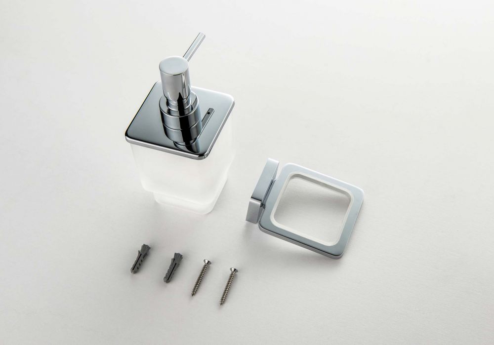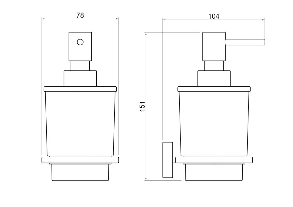 Материал - латунь Стакан из матового стекла Головка дозатора из цинкового сплава Упаковано в белую коробку Размеры: 78*104*151мм