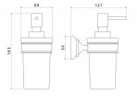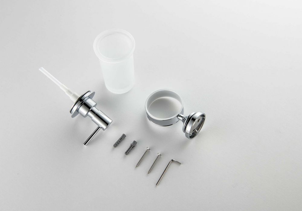 Материал - латунь Стакан из матового стекла Головка дозатора из цинкового сплава Держатель из латуни Упаковано в белую коробку Размеры: 121*69*163мм
