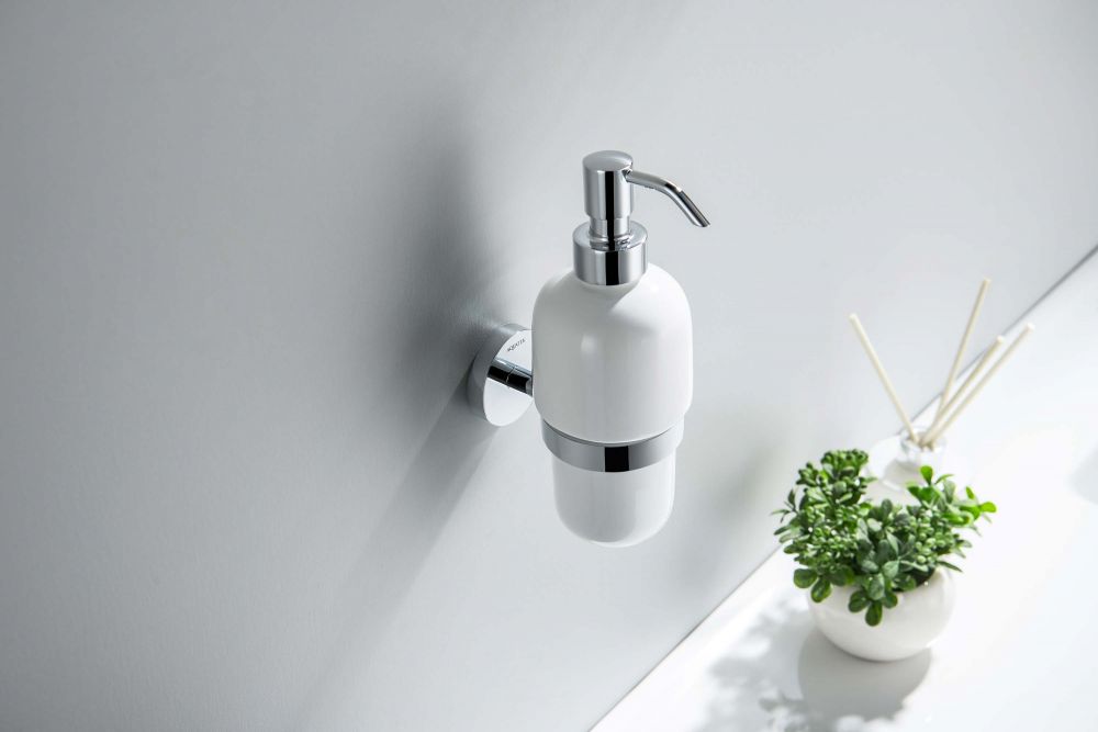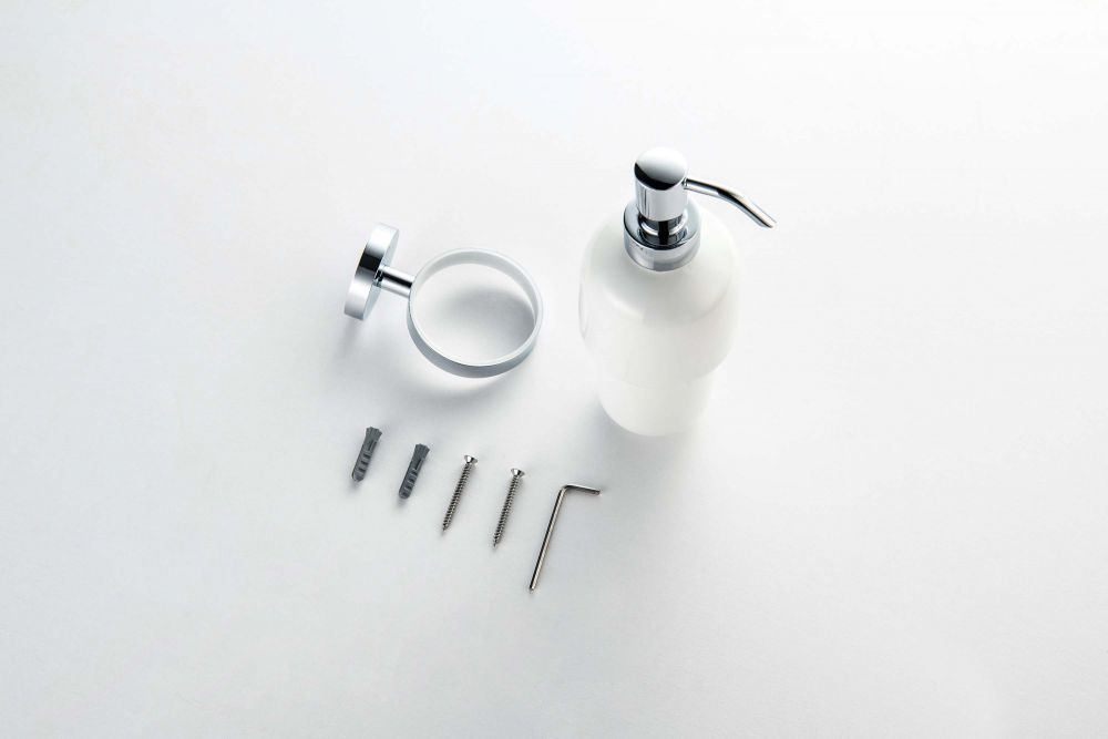 Материал - латунь Керамический стакан Головка дозатора из пластика Держатель из нержавейки Упаковано в белую коробку Размеры:
