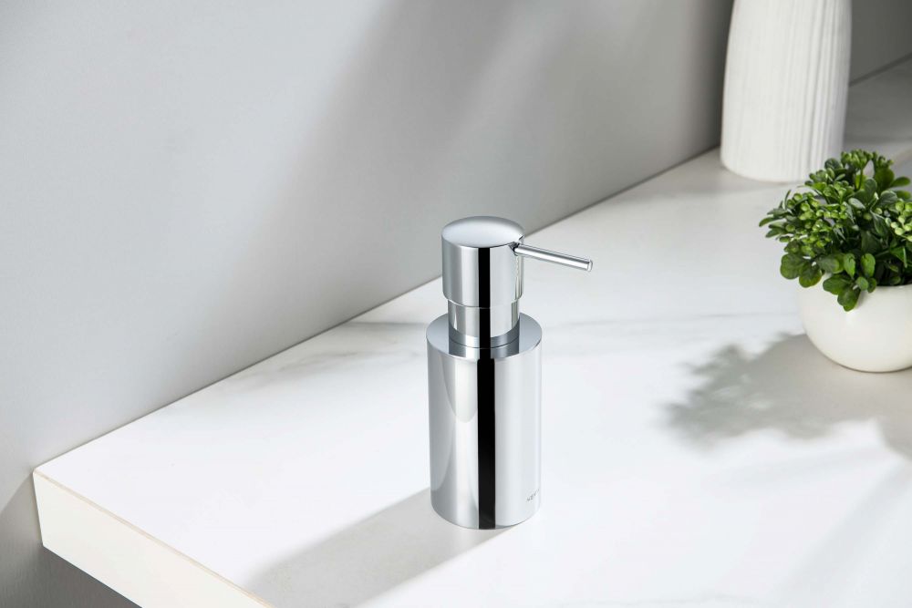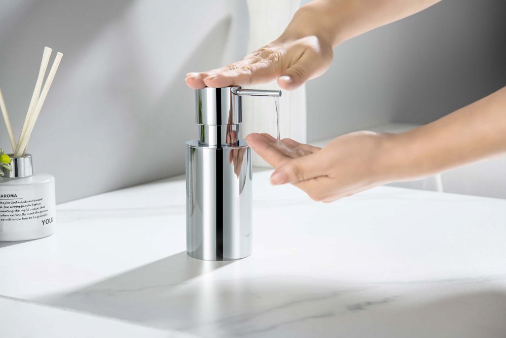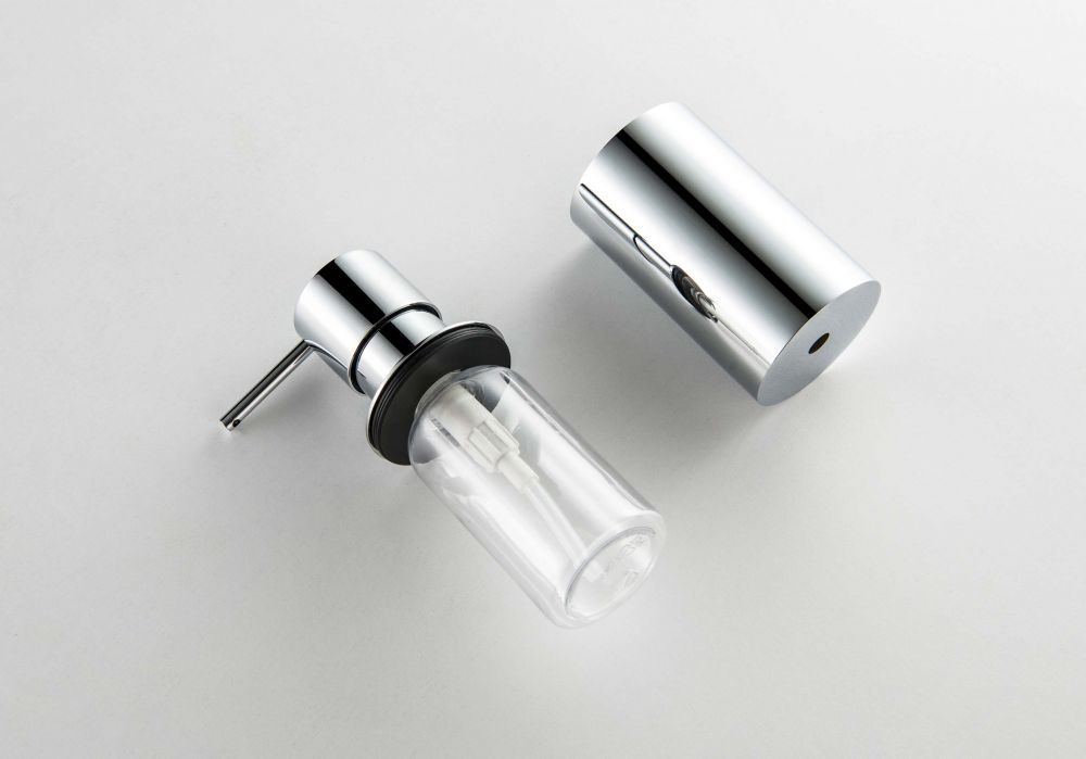 Головка дозатора из латуни Емкость 150мл из нерж. Упаковано в белую коробку Размеры: 60x90x154мм