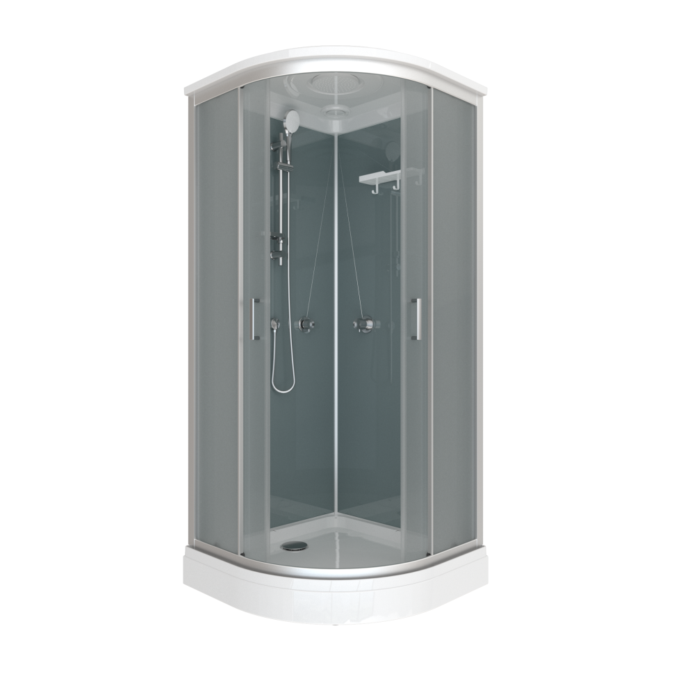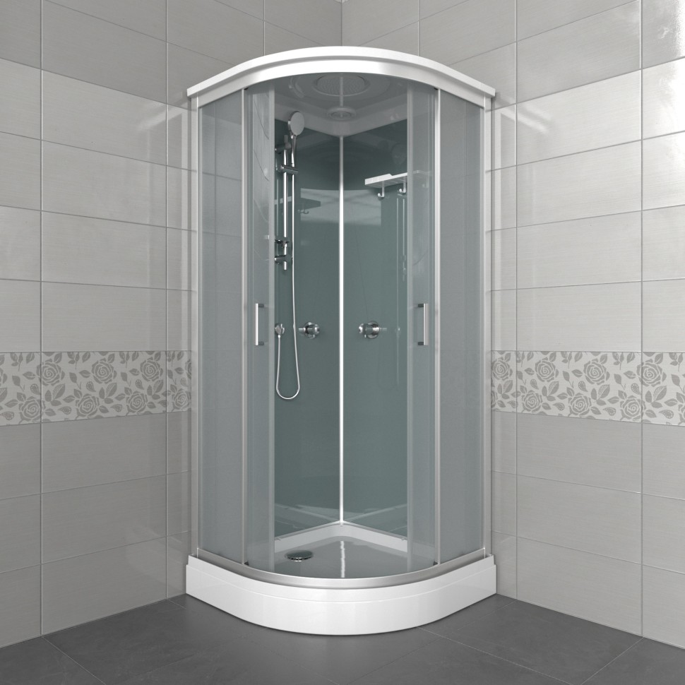 Душевая кабина Прайм-Сатин-Вельвет 90х90 А, низкий поддон DK402 с бессиликоновой сборкой, отсутствие центральной стойки, что делает внутренне простраство кабины более комфортным. Душевой поддон с бортиком. Душевой поддон и крыша slim.