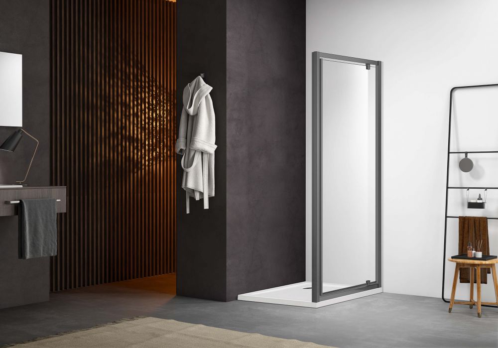 AQ ARI PI 09020GM Душевая дверь, распашная 900x2000 профиль оружейная сталь, стекло прозрачное