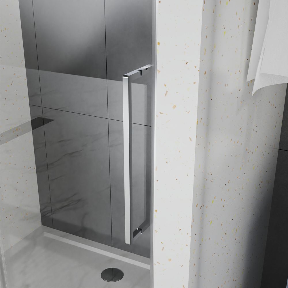 Дверь в нишу Раздвижная, с универсальной (L/R) откатной дверью, на двойных роликах с нержавеющими подшипниками. Ручки выполнены из латуни в цвет профиля. Все стекла имеют толщину 6 мм. Профиль выполнен из анодированного алюминия.