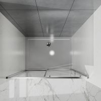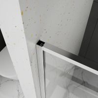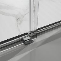 Дверь в нишу Раздвижная, с универсальной (L/R) откатной дверью, на двойных роликах с нержавеющими подшипниками. Ручки выполнены из латуни в цвет профиля. Все стекла имеют толщину 6 мм. Профиль выполнен из анодированного алюминия.