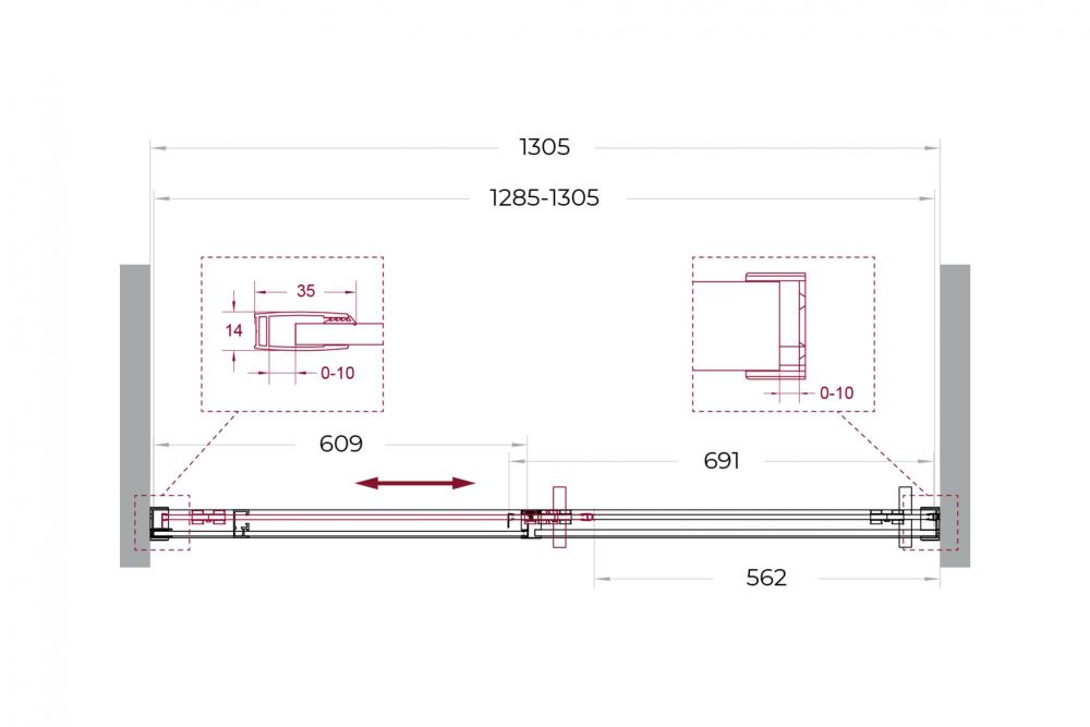 ● Система подвески: Двойные навесные ролики из нержавеющей стали с держателем стекла обеспечивают плавное движение створки, ее устойчивость и отсутствие перекосов.