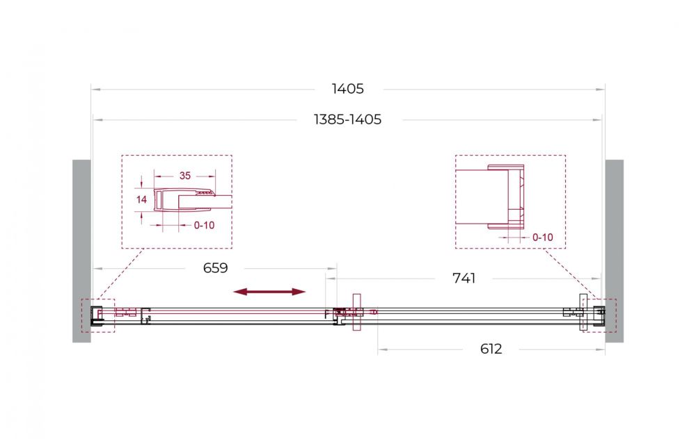 ● Система подвески: Двойные навесные ролики из нержавеющей стали с держателем стекла обеспечивают плавное движение створки, ее устойчивость и отсутствие перекосов.
