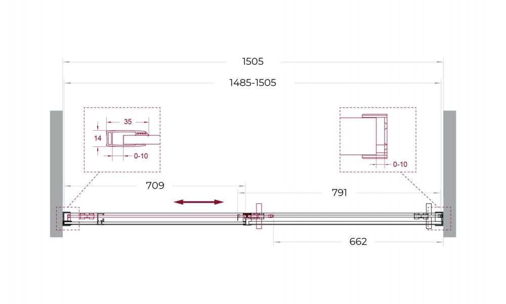 ● Система подвески: Двойные навесные ролики из нержавеющей стали с держателем стекла обеспечивают плавное движение створки, ее устойчивость и отсутствие перекосов.