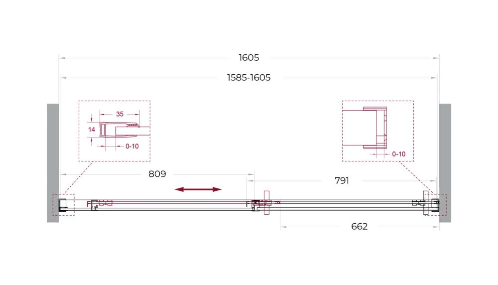 ● Система подвески: Двойные навесные ролики из нержавеющей стали с держателем стекла обеспечивают плавное движение створки, ее устойчивость и отсутствие перекосов.