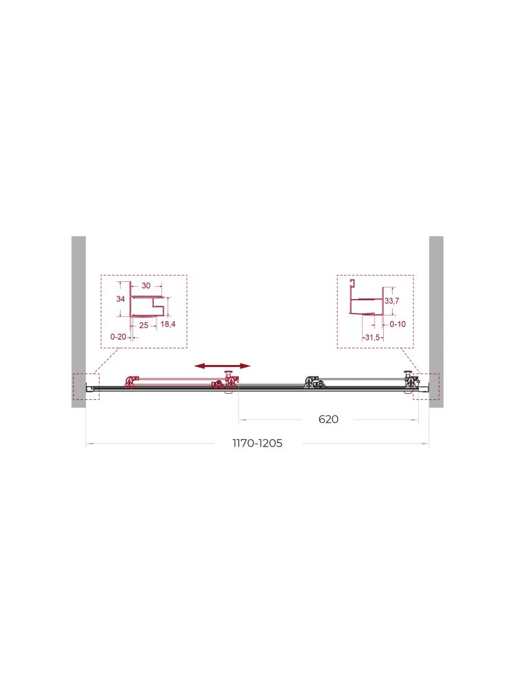 UNO-195-BF-3-120-C-Cr Душевая дверь в размере 120. Форма прямоугольная, толщина стекла 5 мм. Цвет стекла: прозрачное. Профиль в цвете хром