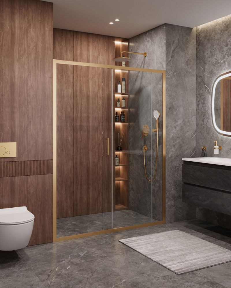 Душевая дверь CEZARES MOLVENO-BF-1-140-C-BORO-IV форма прямоугольная, цвет профиля брашированное золото, цвет стекла прозрачное