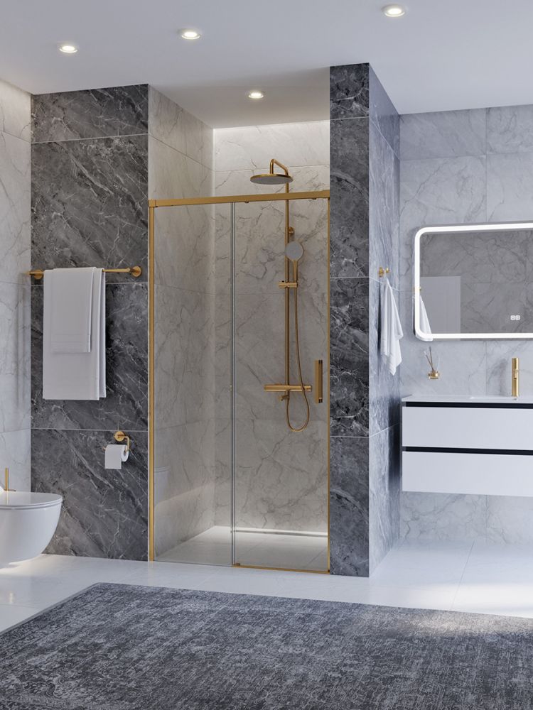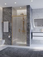 PLANE-BF-1-100-C-BORO Душевая дверь, отделка Брашированное золото без поддона, шириной 100 см. Прозрачное стекло толщиной 6мм