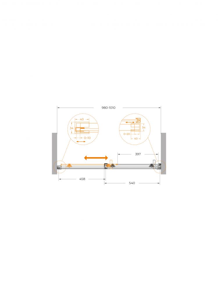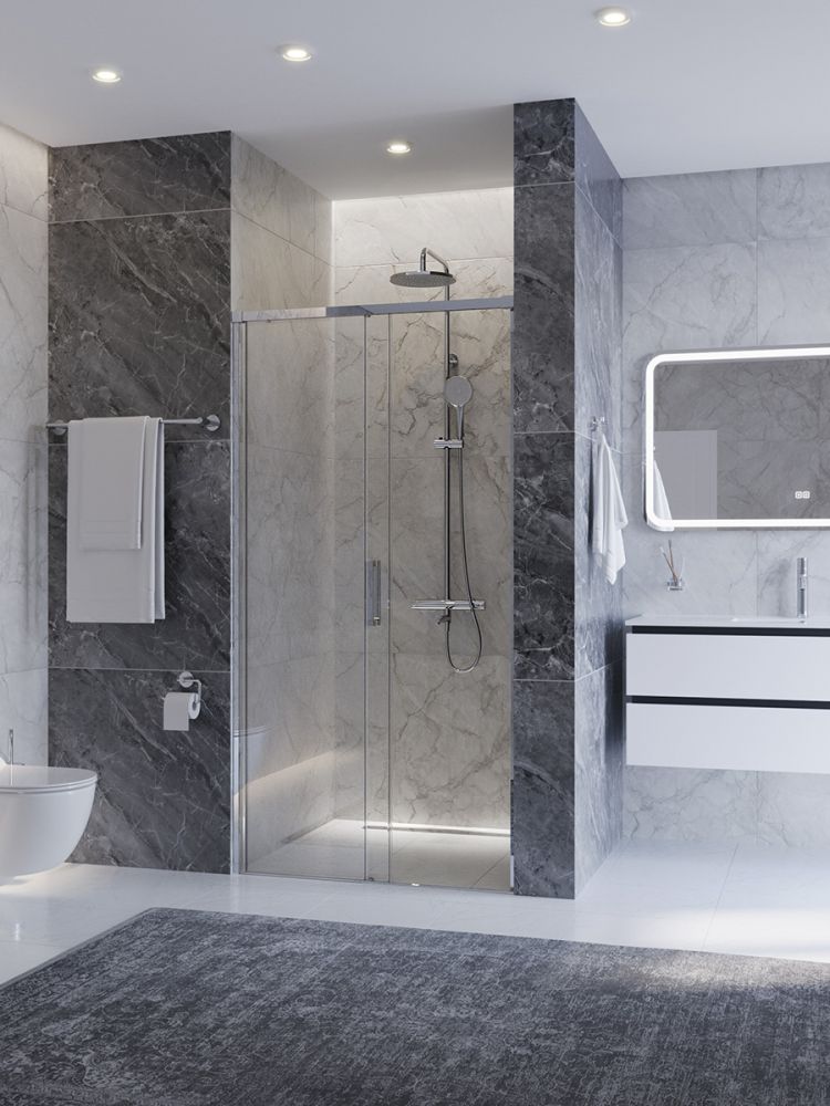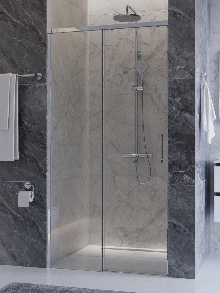 PLANE-BF-1-100-C-CR Душевая дверь, отделка Глянцевый хром без поддона, шириной 100 см. Прозрачное стекло толщиной 6мм