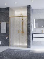 PLANE-BF-1-110-C-BORO Душевая дверь, отделка Брашированное золото без поддона, шириной 110 см. Прозрачное стекло толщиной 6мм
