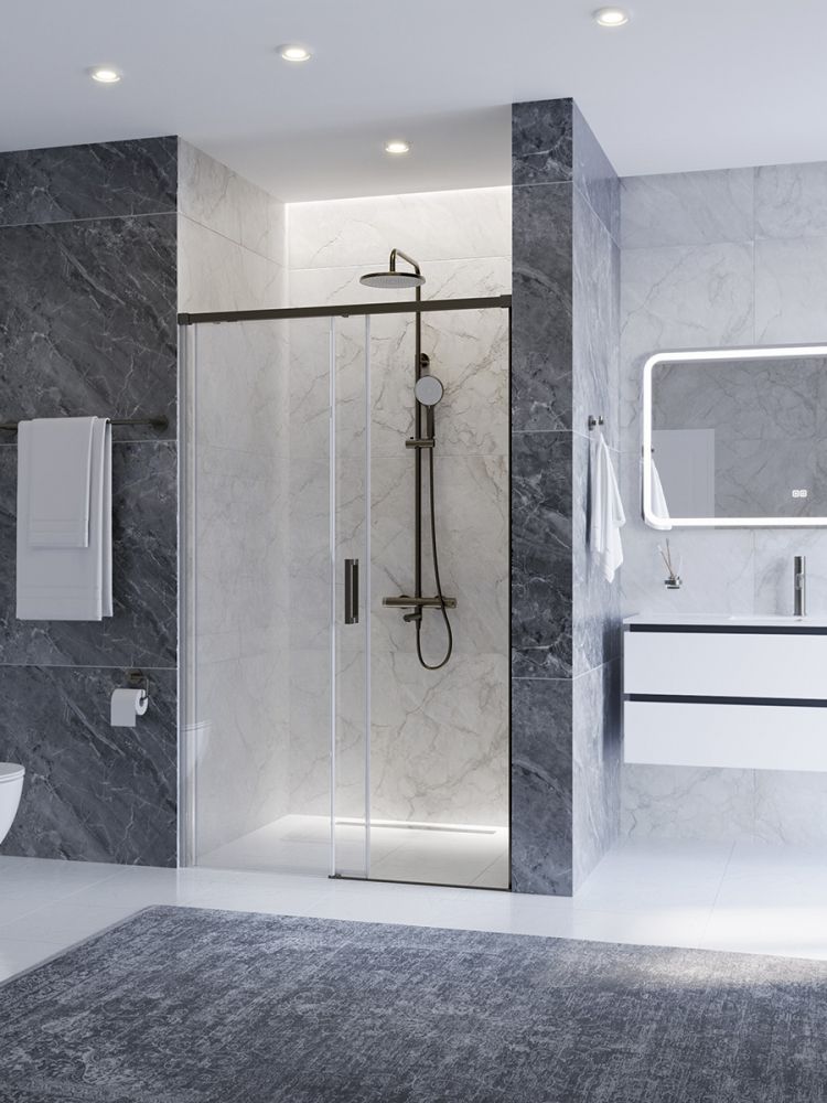 PLANE-BF-1-120-C-GM Душевая дверь, отделка Оружейная сталь без поддона, шириной 120 см. Прозрачное стекло толщиной 6мм
