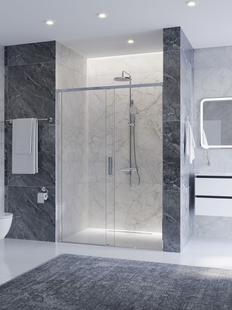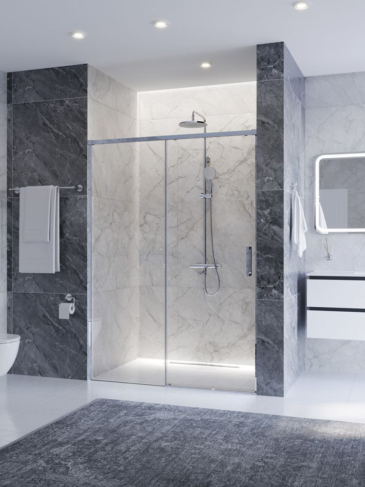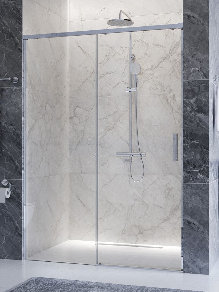 PLANE-BF-1-140-C-CR Душевая дверь, отделка Глянцевый хром без поддона, шириной 140 см. Прозрачное стекло толщиной 6мм