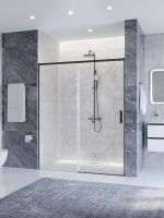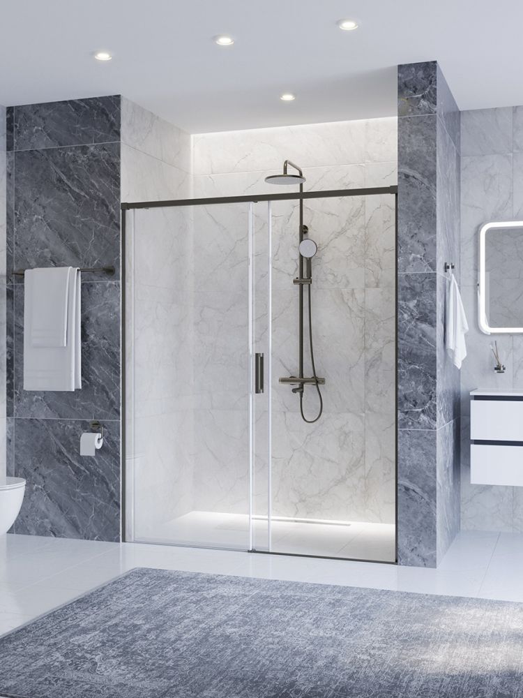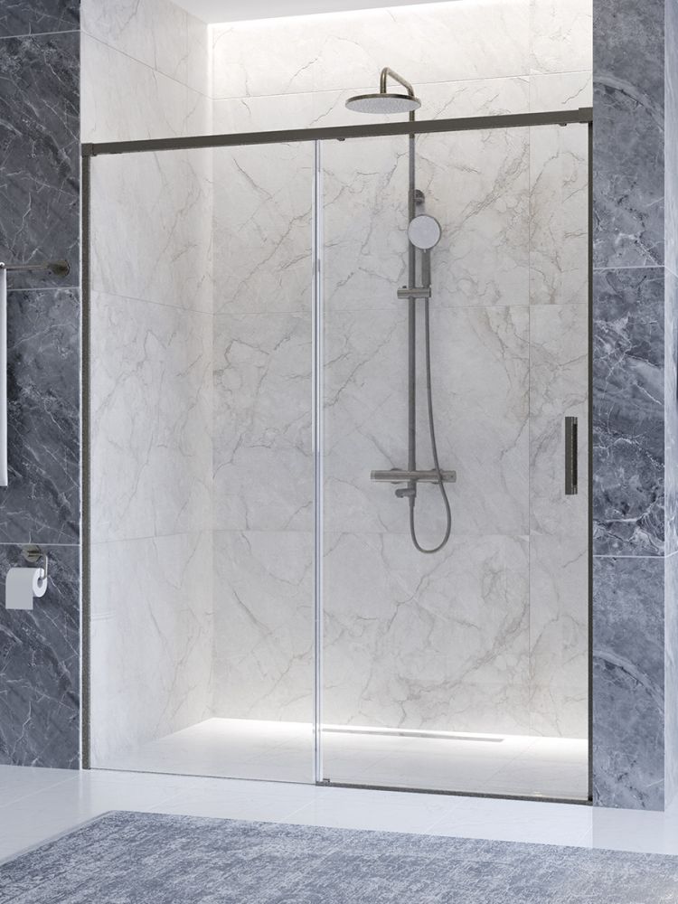 PLANE-BF-1-150-C-GM Душевая дверь, отделка Оружейная сталь без поддона, шириной 150 см. Прозрачное стекло толщиной 6мм