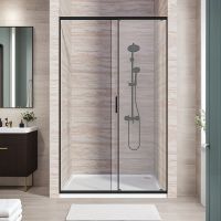 Душевая дверь в нишу BAS Good Door LITE WTW-130-C-B прозрачное стекло в цвете черный матовый