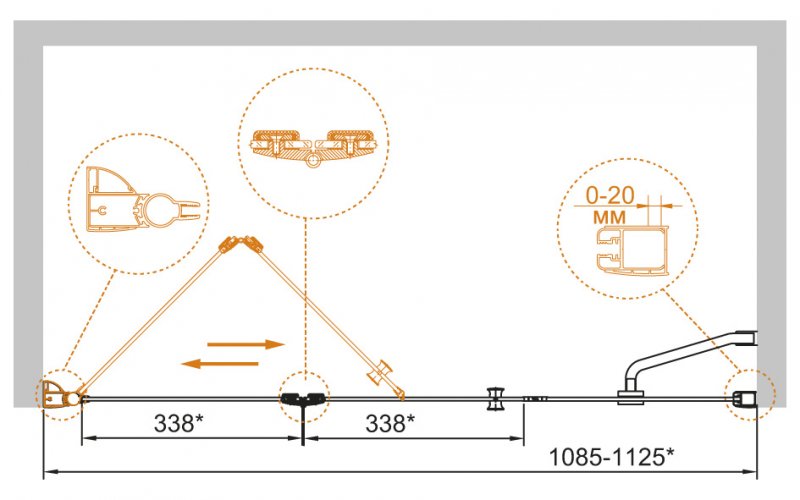 Регулировка ширины: предусмотрена за счет боковых профилей
