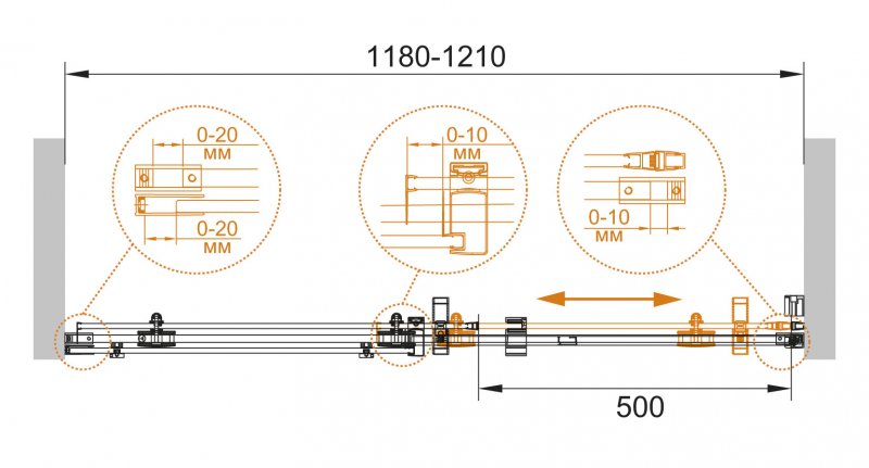 Регулировка ширины: предусмотрена за счет боковых профилей