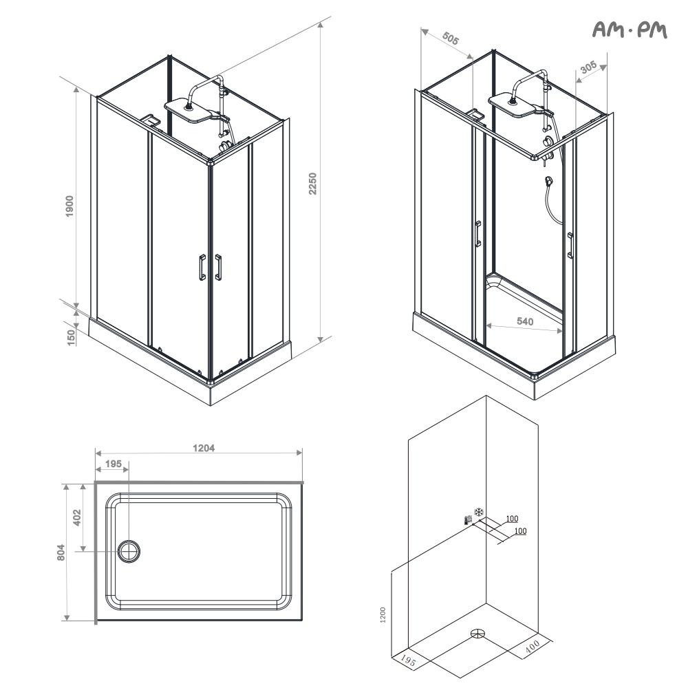 Душевая кабина AM.PM Above 120x80, прямоугольная, без крыши W9XC-403-12080MT