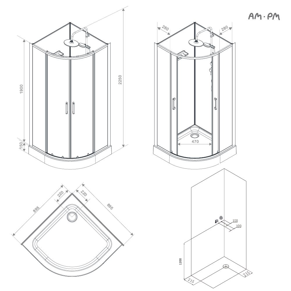 Душевая кабина AM.PM Above 90x90, без крыши, четверть круга W9XC-401-9090MT