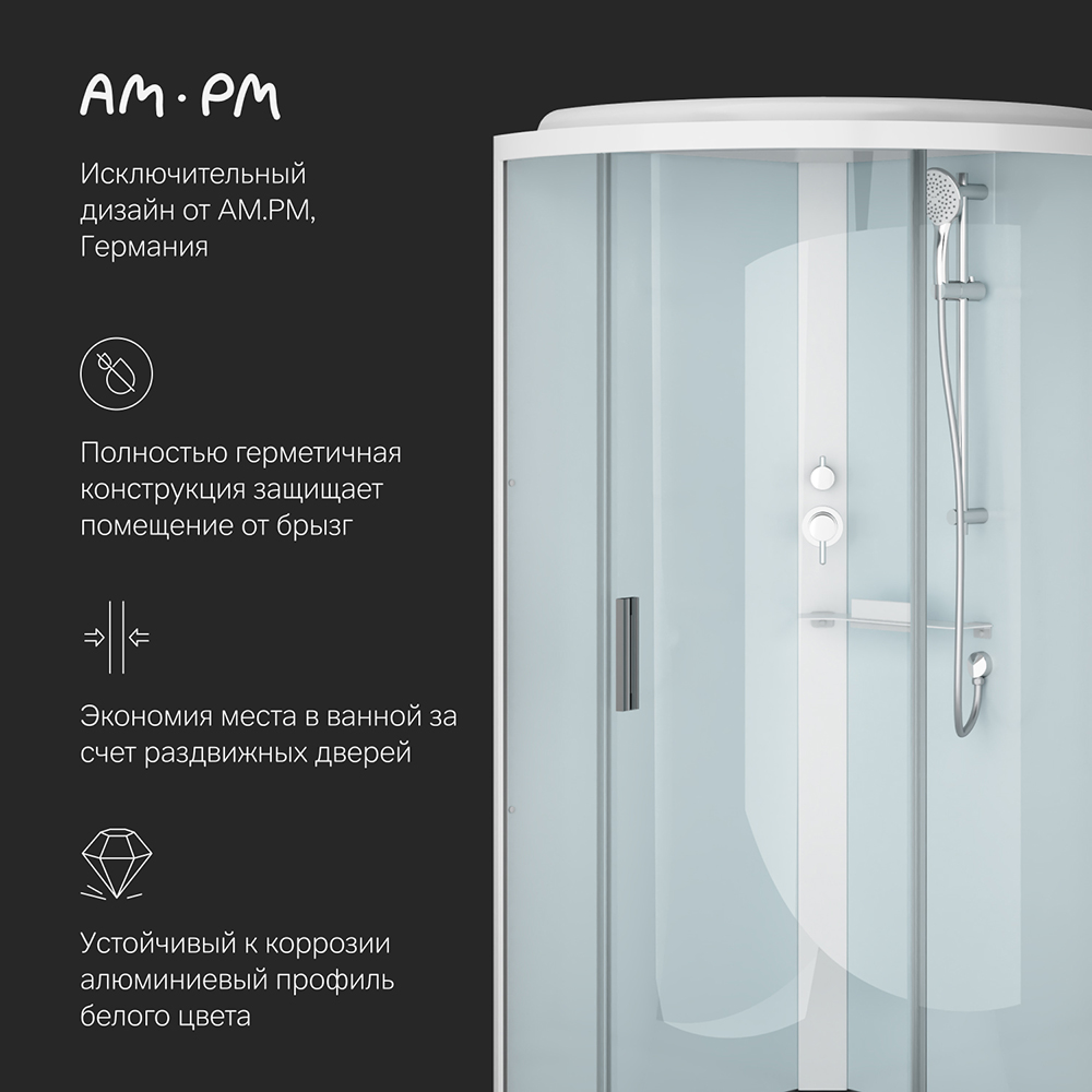 Душевая кабина AM.PM X-Joy 90x90, 1/4 круга, низкий поддон W88C-401-090WT