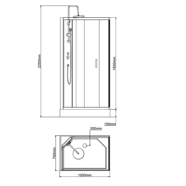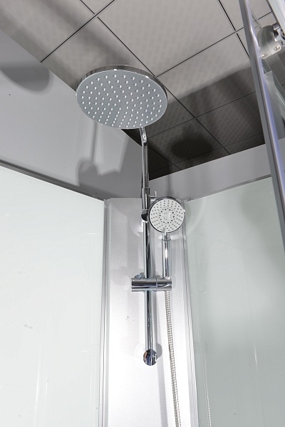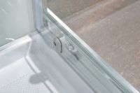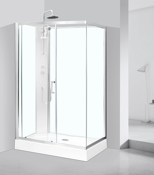 Универсальная - LR - установка, Широкая откатная дверь, Низкий акриловый поддон на раме с сифоном, Регулируемые ножки на поддоне, Смеситель с дивертором, Ручной душ, «Тропический дождь», диаметр 190 мм, Противоударное калёное стекло 4-5 мм, Крашенные задние стеклянные стенки «Safety Glass», Профиль - полированный хром, Ручки «Stainless steel», Максимальная нагрузка на поддон 500 кг, Сантехнический акрил из Германии, Плавное скольжение дверей и долговечность работы (более 100000 открывание дверей), Магнитные уплотнители дверей, Система двойных роликов с подшипниковым механизмом «Easy sliding»