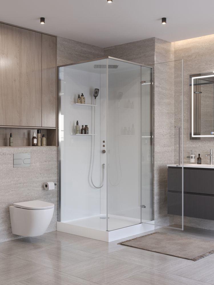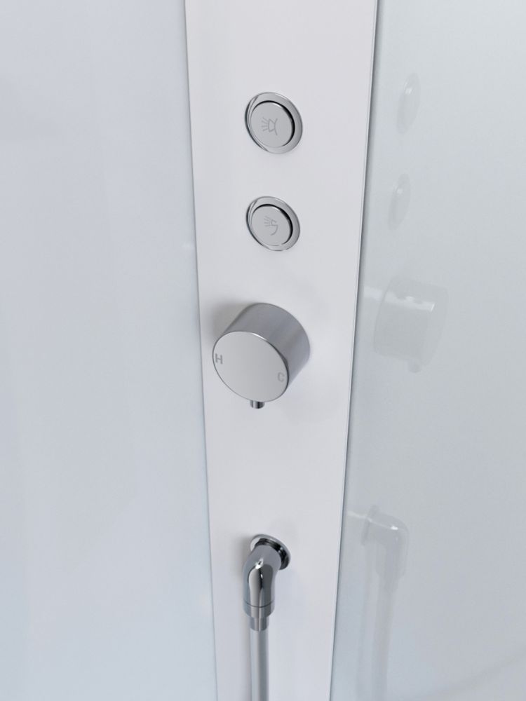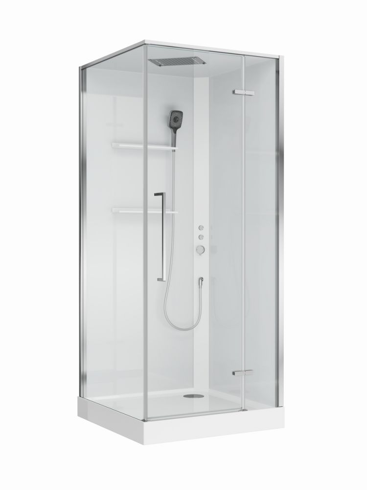 UNO-CAB-A-1-90-C-Cr-Bi-TOP-R Душевая кабина с задними стенками, смесителем, верхним и ручным душем, акриловым поддоном и крышей, правосторонняя