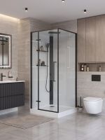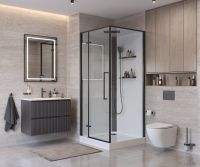 UNO-CAB-A-1-90-C-NERO-Bi-TOP-L Душевая кабина с задними стенками, смесителем, верхним и ручным душем, акриловым поддоном и крышей, левосторонняя