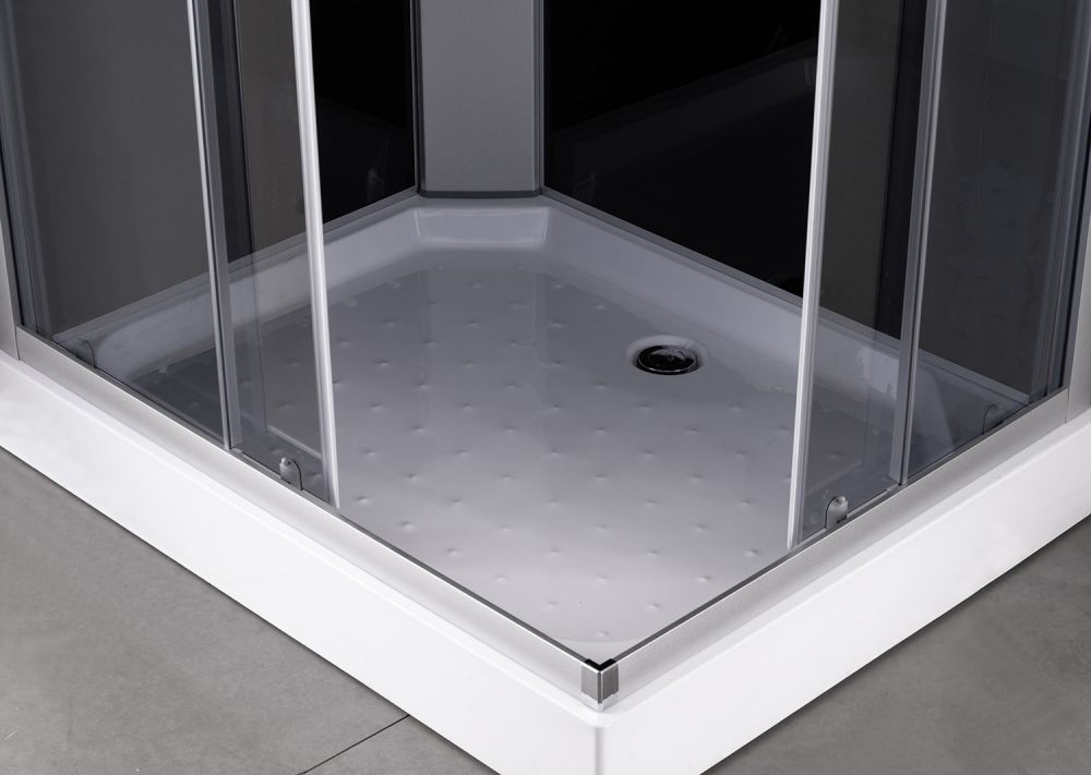 Размеры: 1000х800х2150 мм – оптимальные габариты для просторной душевой зоны, подходящие как для больших, так и для средних ванных комнат. Сторона установки: Левосторонняя – идеально подходит для планировки вашей ванной комнаты, обеспечивая удобный доступ. Цвет кабины: Черный – придает кабинке современный и элегантный вид. Стекло: матовое закаленное стекло толщиной 4 мм – обеспечивает безопасность и долговечность. Поддон: Низкий поддон высотой 13 см – удобное и безопасное решение, облегчающее вход и выход из кабины, что особенно важно для семей с детьми и пожилых людей. Поддон выполнен из прочного и долговечного материала, устойчивого к царапинам и легко моющегося. Профиль: Цвет профиля "сатин" – элегантное матовое покрытие, которое придает кабине современный и изысканный вид. Профиль "сатин" устойчив к коррозии и сохраняет свой первоначальный вид на долгие годы. В комплект входит верхний тропический душ, обеспечивающий приятный и равномерный поток воды, а также смеситель с ручным душем для максимального удобства и разнообразия вариантов использования.