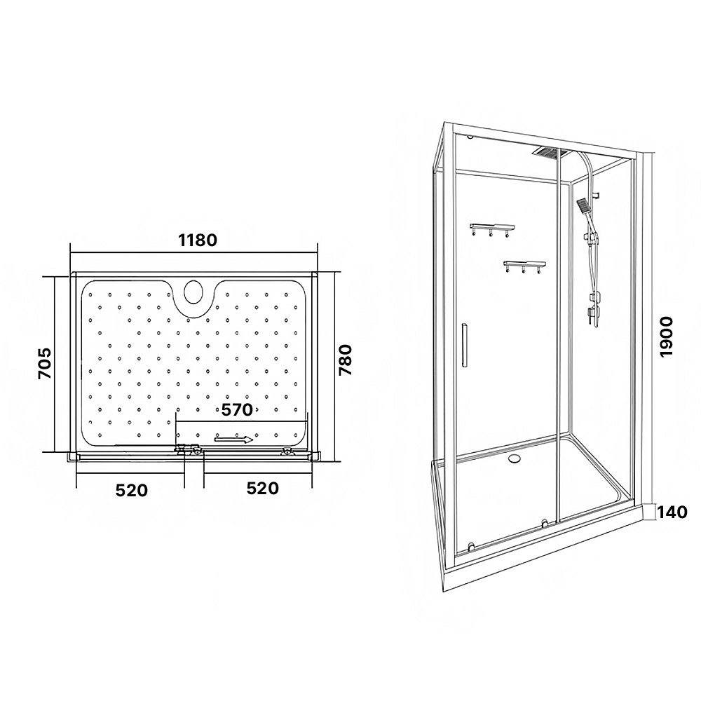 Душевая кабина Loranto 1180x780x2040 мм — стильное и функциональное решение для вашей ванной комнаты. Модель выполнена без крыши, что обеспечивает дополнительный комфорт и вентиляцию. Правостороннее открытие дверей удобно впишется в планировку помещения. Задняя стенка изготовлена из белого стекла, придающего кабинке современный и аккуратный вид. Прозрачные двери из закалённого стекла толщиной 4 мм обеспечивают безопасность и долговечность эксплуатации. Надёжный алюминиевый профиль чёрного цвета гармонично дополняет дизайн и гарантирует устойчивость конструкции. Поддон высотой 14 см выполнен из прочного ABS-пластика, устойчивого к механическим повреждениям и легко поддающегося очистке. В комплект входит смеситель с ручным и верхним душем, что позволяет выбрать удобный способ принятия водных процедур. Душевая кабина Loranto — идеальный выбор для тех, кто ценит качество, комфорт и современный дизайн.