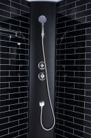 Душевая кабина Loranto 80х80х215 — идеальное решение для современной ванной комнаты, сочетающее стиль, функциональность и надежность. Компактные размеры 80х80 см позволяют установить кабину даже в небольшом помещении, а высота 215 см обеспечивает комфортное использование. Поддон высотой 25 см выполнен из прочного ABS-пластика, устойчивого к механическим повреждениям и легко поддающегося очистке. Задняя стенка оформлена из стекла с черныйм кирпичным узором, который придает интерьеру изысканный и современный вид. Прозрачное раздвижное дверное полотно изготовлено из закаленного стекла толщиной 4 мм, что гарантирует безопасность и долговечность эксплуатации. Алюминиевый профиль с хромированным покрытием придает конструкции элегантность и защищает от коррозии. В комплект входит верхний тропический душ, обеспечивающий приятный и равномерный поток воды, а также смеситель с ручным душем для максимального удобства и разнообразия вариантов использования.