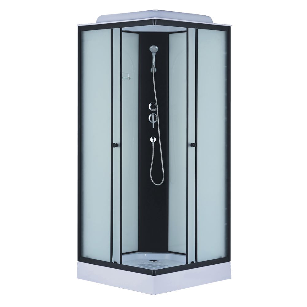 Душевая кабина Loranto 880х880х2150 белое заднее стекло, поддон 14 см, матовое стекло 4 мм, профиль черный (CS-992EBTM/W-90)
