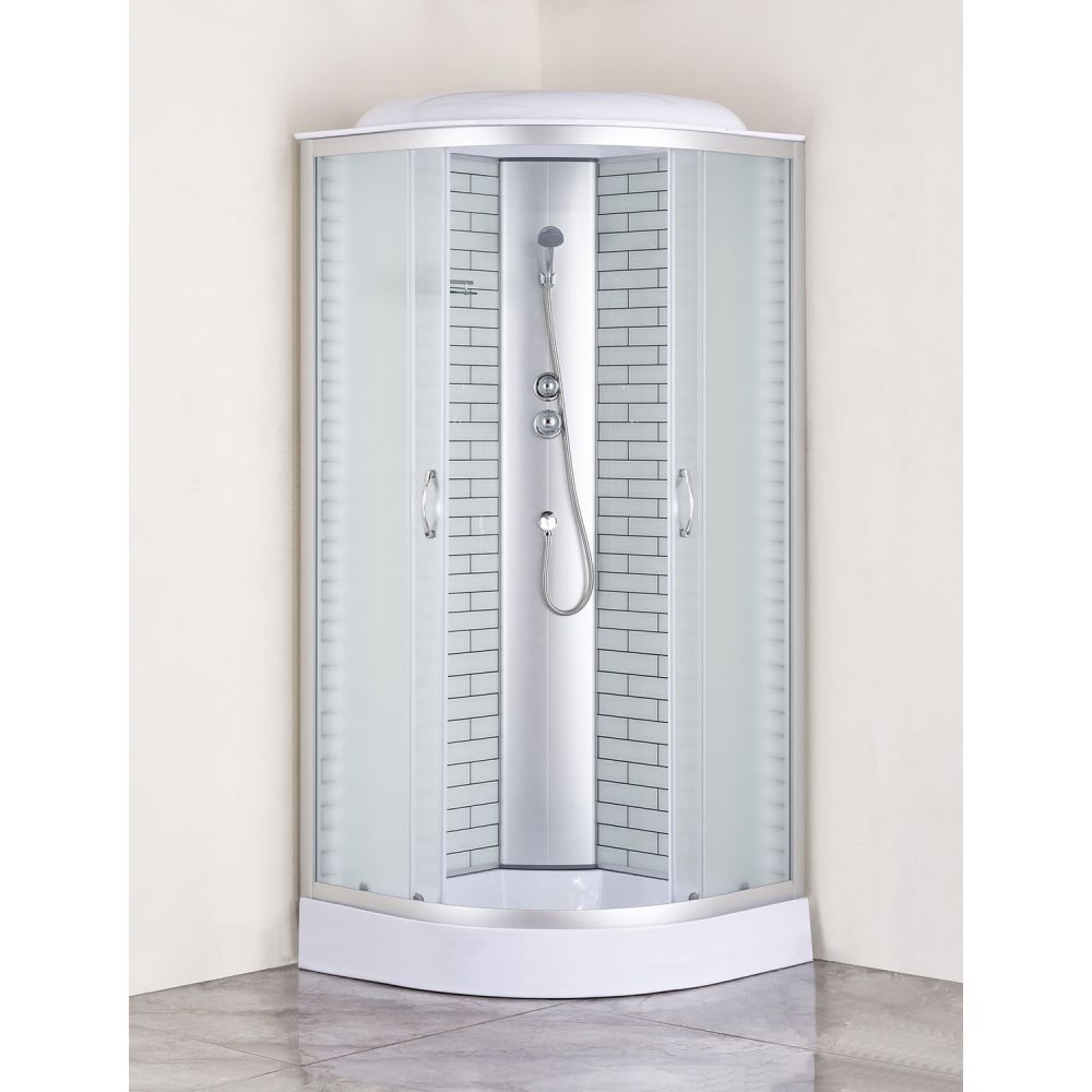 Душевая кабина Loranto 90х90х215 поддон 13см, белый кирпичный узор, матовое стекло 4мм, профиль хром (CS669013FW90)