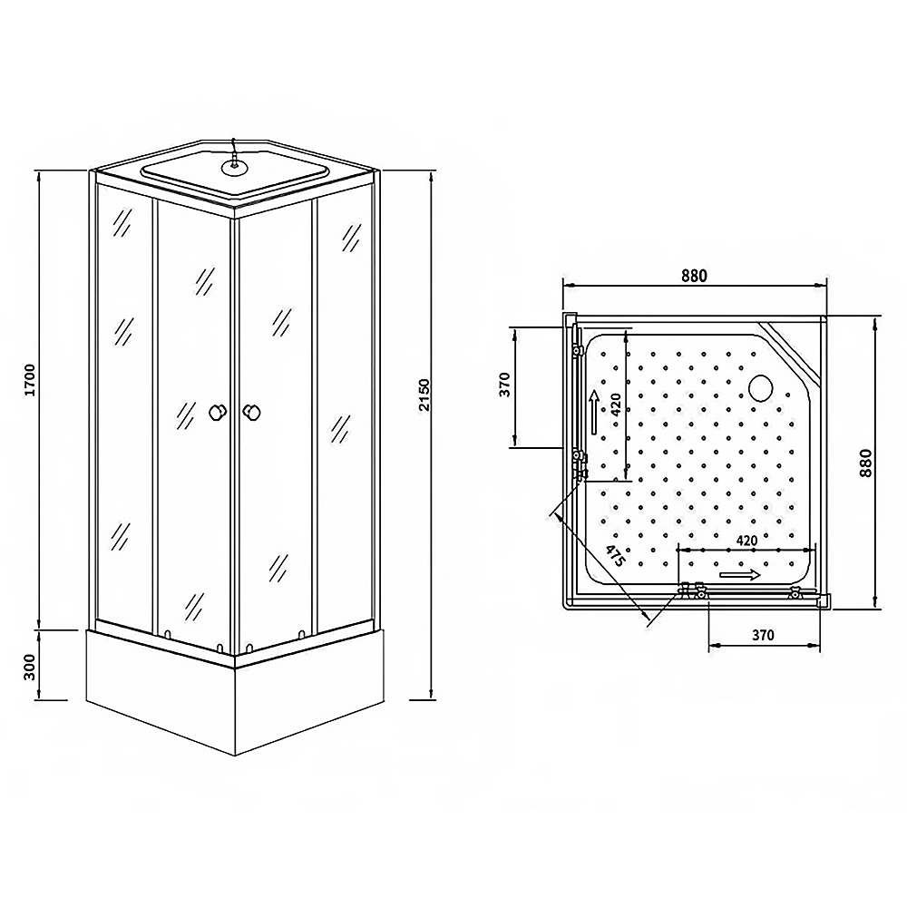 Душевая кабина Loranto 880х880х2150 белое заднее стекло, поддон 30 см, матовое стекло 4 мм, профиль хром матовый (CS-990ETM/W-90)