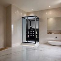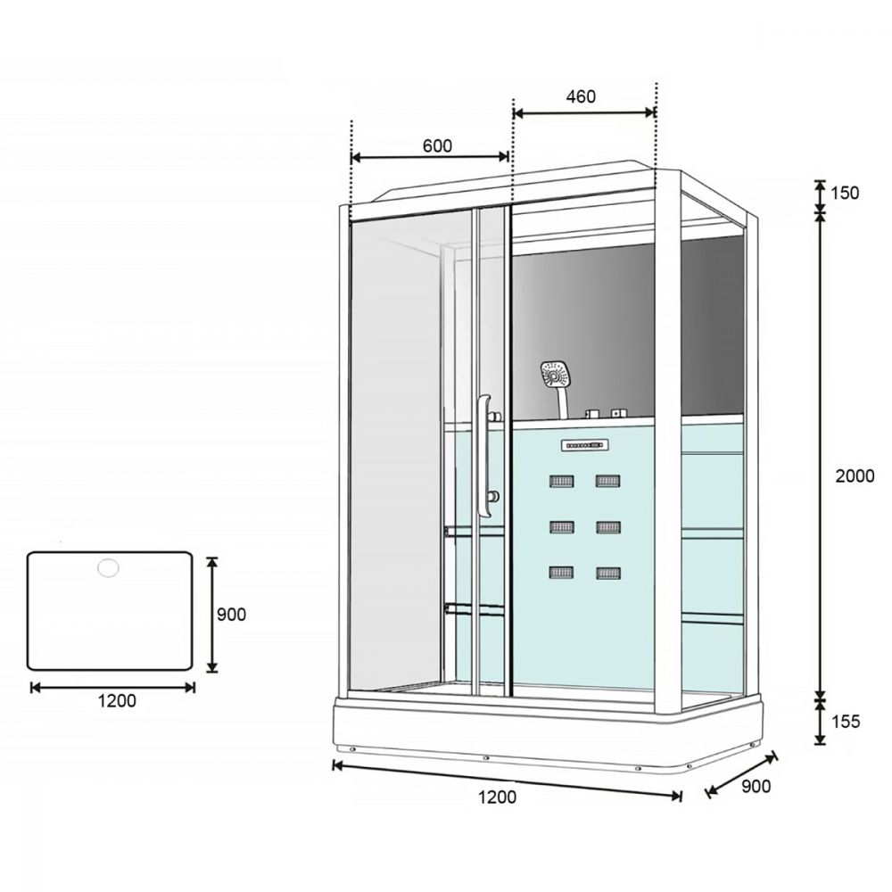 Душевая кабина CS-127-3A L (90x120x215 см) черная c электроникой. Алюминиевая рама, Закаленное стекло 6мм, управляется сенсорной панелью, радио, вентилятор, светильник, полка, смеситель 3 режимный кран, массаж ног, крыша с верхним душем, ручная лейка. Кабина устанавливается в левый угол, открывается справа налево.