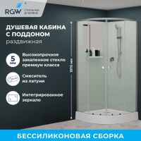 Душевая кабина RGW полукруг, раздвижные двери, стекло толщиной 5 мм, профиль хром AN-208 в размере 900x900 381320899-12, сборка без герметика. Матовая поверхность профиля.
