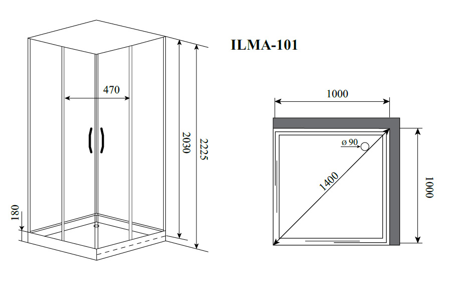 Душевая кабина Timo Ilma 101 100x100 низкий поддон, исполнение универсальное, передение стенки прозрачное стекло, профиль в цвете хром