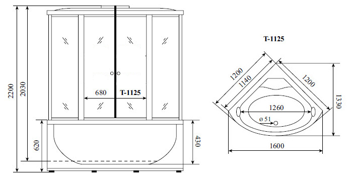 Душевая кабина Timo T-1125 120x120 высокий поддон, исполнение универсальное, передение стенки тонированное стекло, профиль в цвете хром