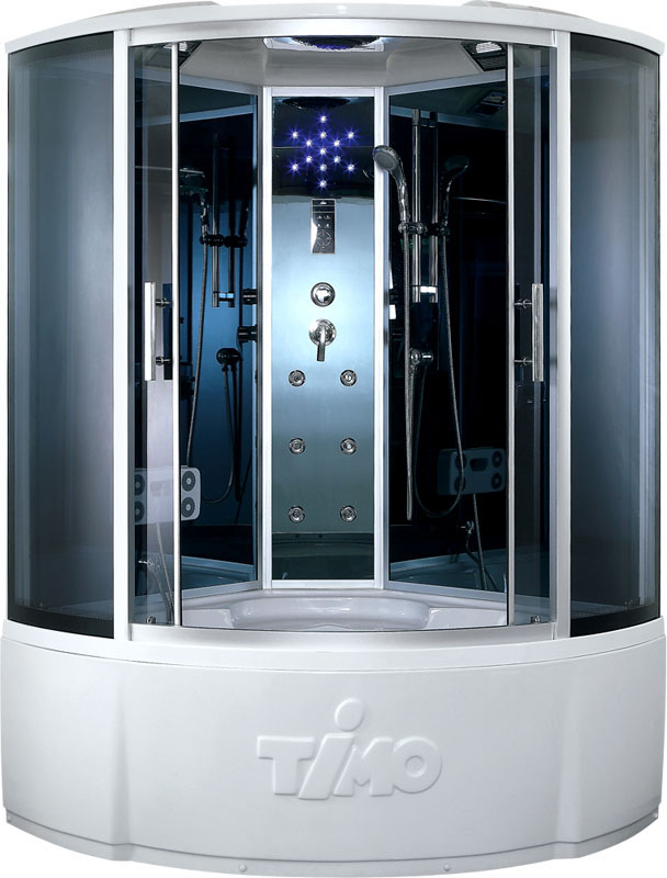 Душевая кабина Timo T-1135 135х135 высокий поддон, исполнение универсальное, передение стенки тонированное стекло, профиль в цвете хром