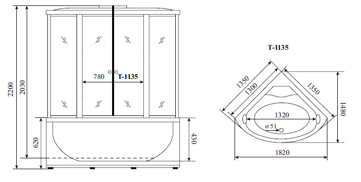 Душевая кабина Timo T-1135 135х135 высокий поддон