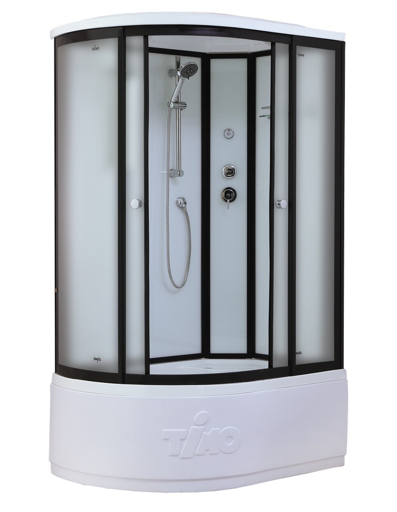 Душевая кабина Timo Т-6620 Black R Fabric 120x85 высокий поддон, исполнение левое, передение стенки матовые стекло, профиль в цвете черный