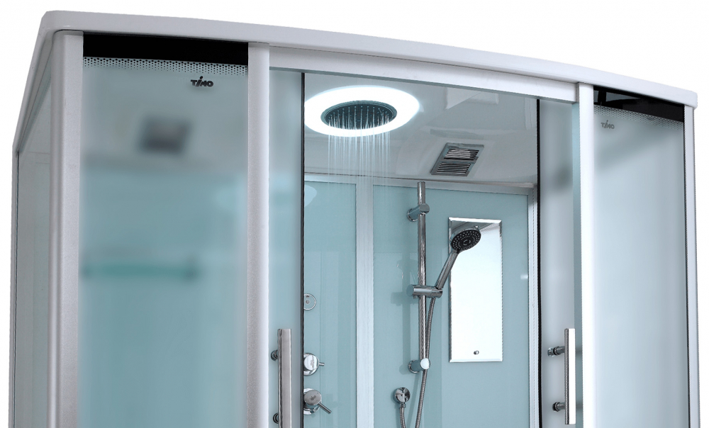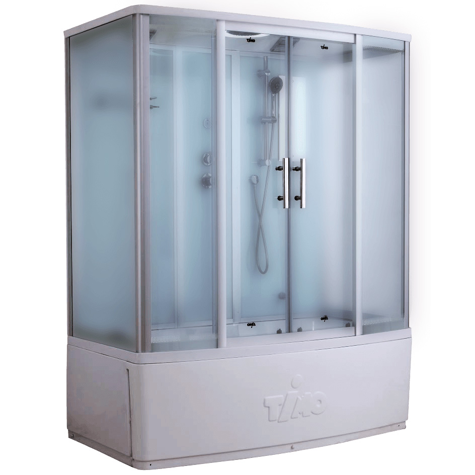 Душевая кабина Timo T-6650 Silver Fabric 150x88 высокий поддон, исполнение универсальное, передение стенки матовые стекло, профиль в цвете хром