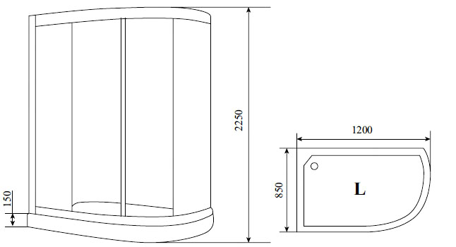 Душевая кабина Timo T-7702 L 120x85 низкий поддон, исполнение левое, передение стенки прозрачное стекло, профиль в цвете хром