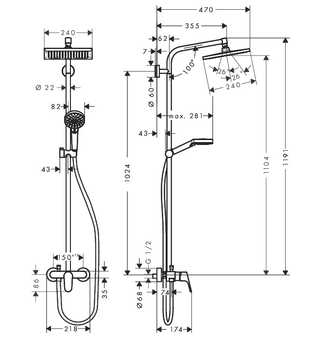 регулируемый ограничитель температуры горячей воды верхний душ Crometta E 240 размер душевого диска: 240 x 240 мм регулируемый угол верхнего душа тип струи: Rain https://youtu.be/1NJJq8vlM9Y расход воды для струи Rain (при 3 бар): 15 л/мин полностью хромированный душевой диск длина держателя для душа: 350 мм регулируемое по высоте крепление ручного душа вид монтажа: наружный монтаж Душ в формате XXL https://youtu.be/8byguMtlUuY Защита от известкового налета QuickClean https://youtu.be/GQDCpbraWNo Состоит из: Шланг Isiflex 1,60 м, ½’ (# 28276000) Верхний душ Crometta E 240 1jet (# 26726000) Ручной душ Crometta Vario (# 26330400)