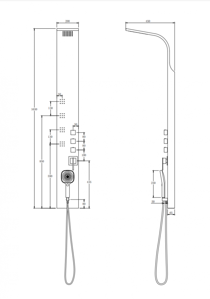 Душевая панель Taliente A01, алюминий, черный, без излива TA-G-A01Bb
