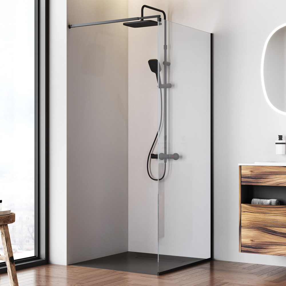 Минималистичная и современная душевая перегородка Walk In не только снизит визуальный шум в ванной но и благодаря оптимальным размерам впишется в любую ванную комнату. Высота 2 м регулируемый по длине кронштейн 80 - 120 см. Анодированный профиль и ударопрочное прозрачное стекло толщиной 8 мм гарантируют долгую службу. Защитное антиизвестковое покрытие EasyClean помогает легко поддерживать чистоту стекла. Конструкция оснащена крючком который удобно расположен на стекле. Это позволяет держать полотенца и другие аксессуары в непосредственной близости от душевого пространства что делает использование еще более комфортным.