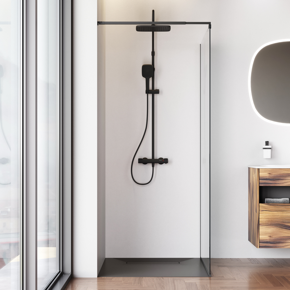 Душевая перегородка AM.PM Func 90x200, стекло прозрачное 6 мм, профиль черный W84WI-90-F1-BTE